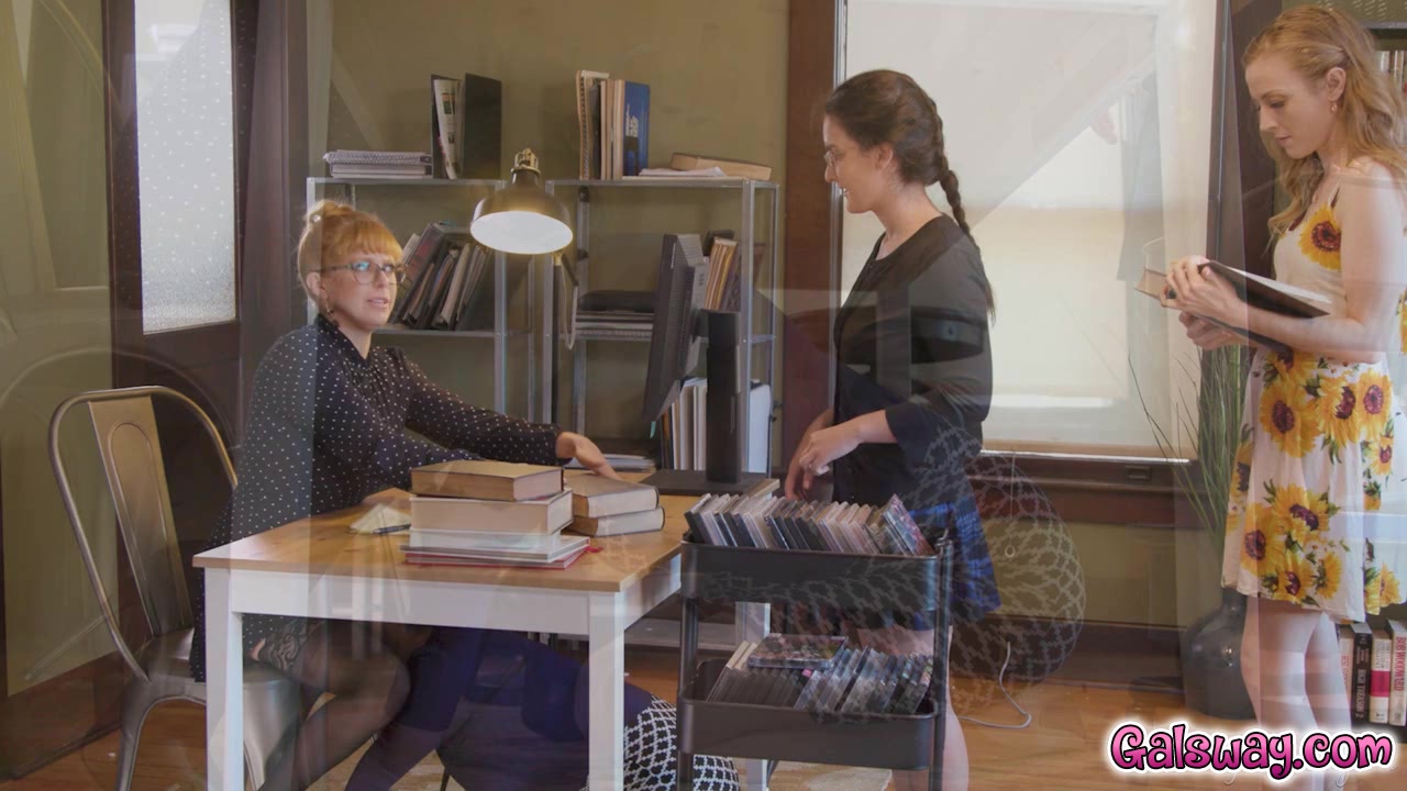 Librarians Penny Pax and Jay Taylor are working the closing shift at the library. They are both giving each other sly, sexy looks amidst their tasks. Jay can't wait until they're closed, so she crawls under the desk, hikes up Penny's skirt and starts to eat her out.