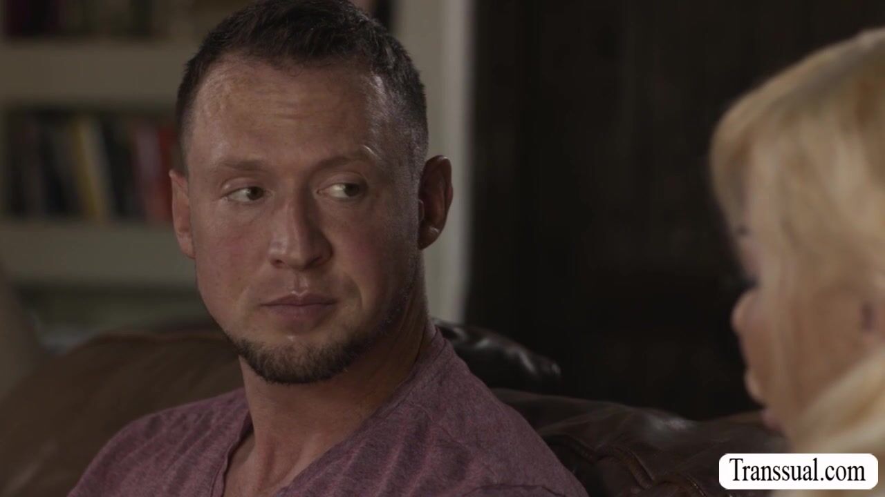 Shemale goddess Brittney Kade visits the friend of her boyfriend.They start kissing each other on the couch and she then sucks his big cock passionately.In return,the guy bareback fucks her tight ass so deep and hard.