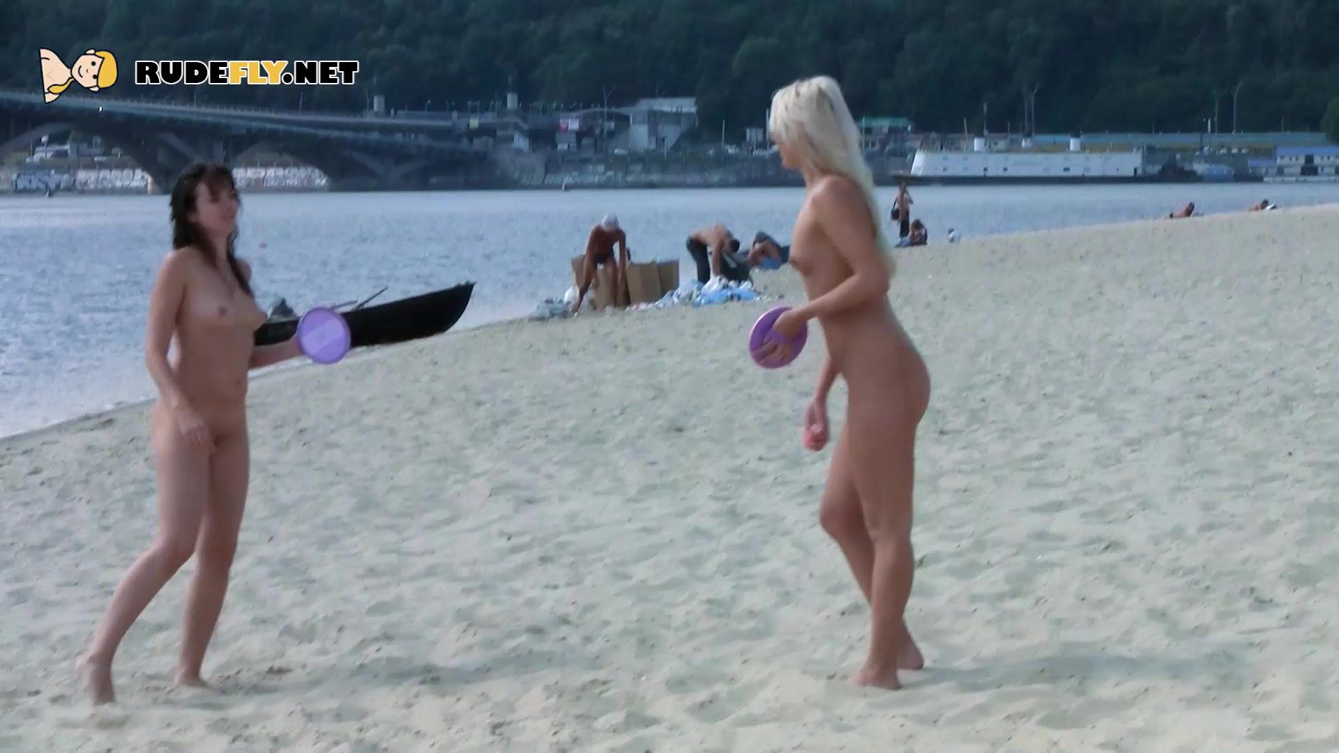 Hot nude beach girl is catching some rays while a camera perfectly films her from behind