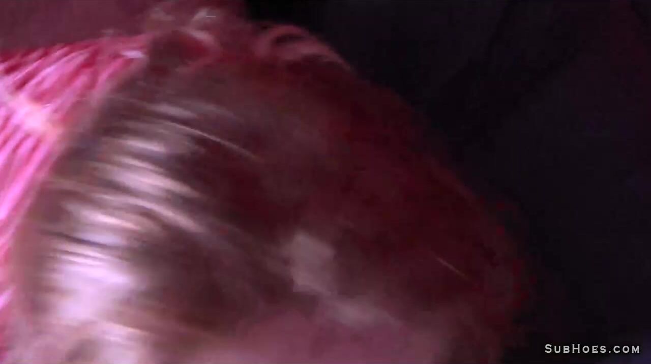 Horny and dirty tattooed redhead slut in lingerie gives ass licking and double blowjobs on hard big cocks while she gets anal fucking and cumshots with submissive hair pulling in threesome