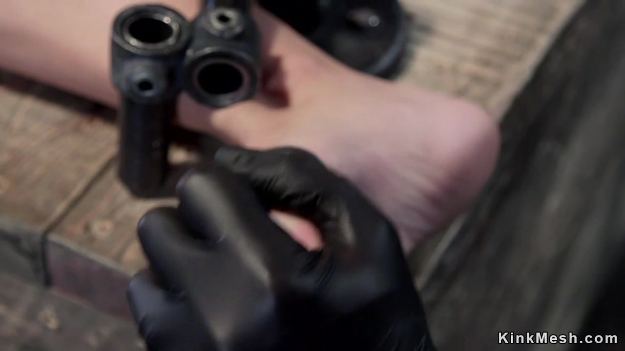 Helpless brunette in device bondage