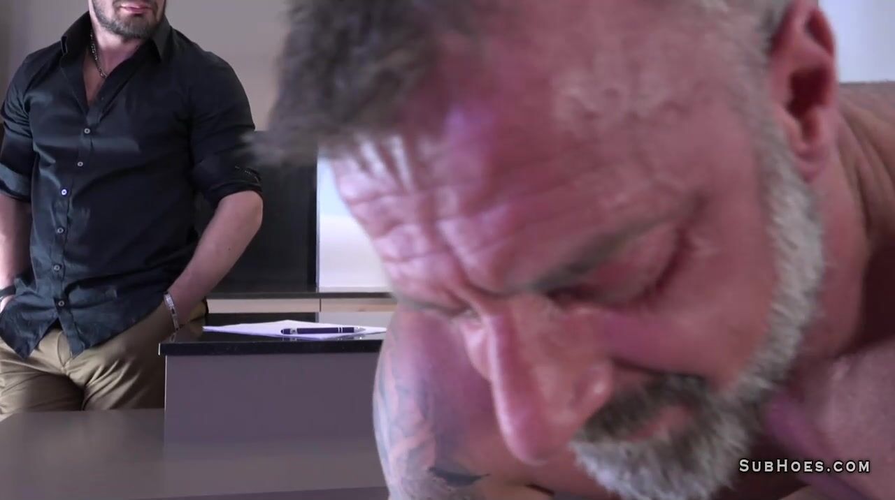 Sexy and dirty submissive brunette with big tits Alice Hunter gives oral deepthroat blowjob on hard dick with cum swallows while her cockold boyfriend looking