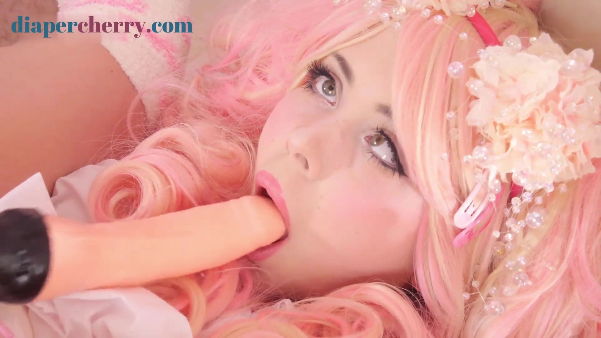 Poor little Diaper Cherry must endure the probing dildo pole in her mouth. Inducing eye watering ahegao and soft groans to match the crisp crinkle sounds of her bustling diaper.