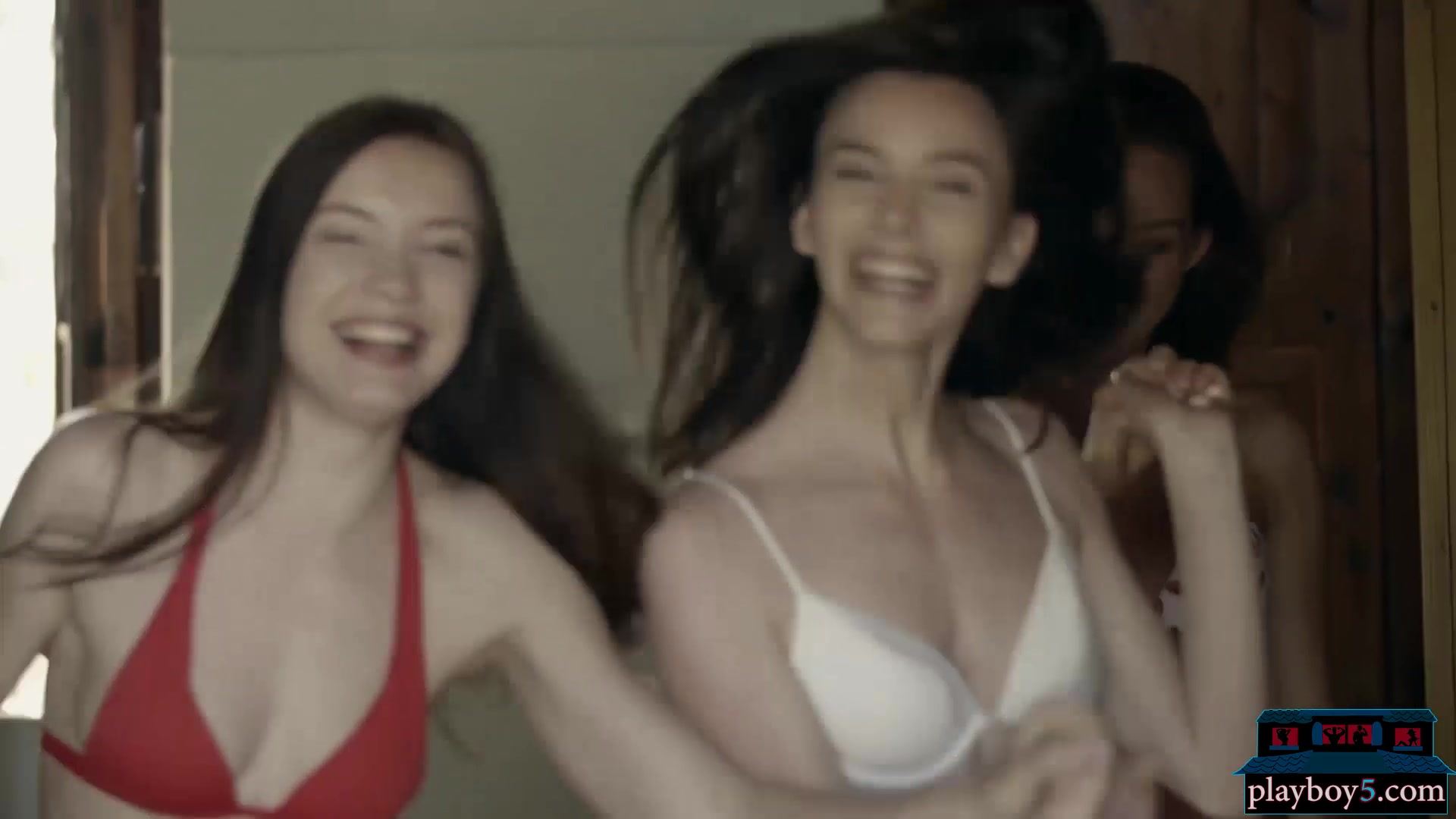Three lesbian girlfriends from the Ukraine Janeth Tense Adel Morel nd Nicole Fox outdoor playtime in the sun near and in the pool They strip off their bikinis and look amazing in the nude dancing around and enjoying each others company