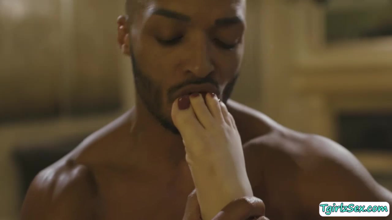 Gorgeous TS Natalie Mars visits her black ex boyfriend in his house.After that,she gets horny and she starts kissing him.Next is she throats his black cock passionately and in return her ex boyfriend licks her ass first before he fucks it so hard.