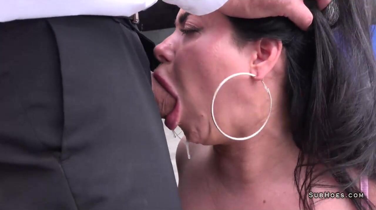 Dirty submissive brunette slut with big tits and butt Arish Lamborghini gets hair pulling with rough and hard deep throat fucking with spanking and spitting from Pascal White