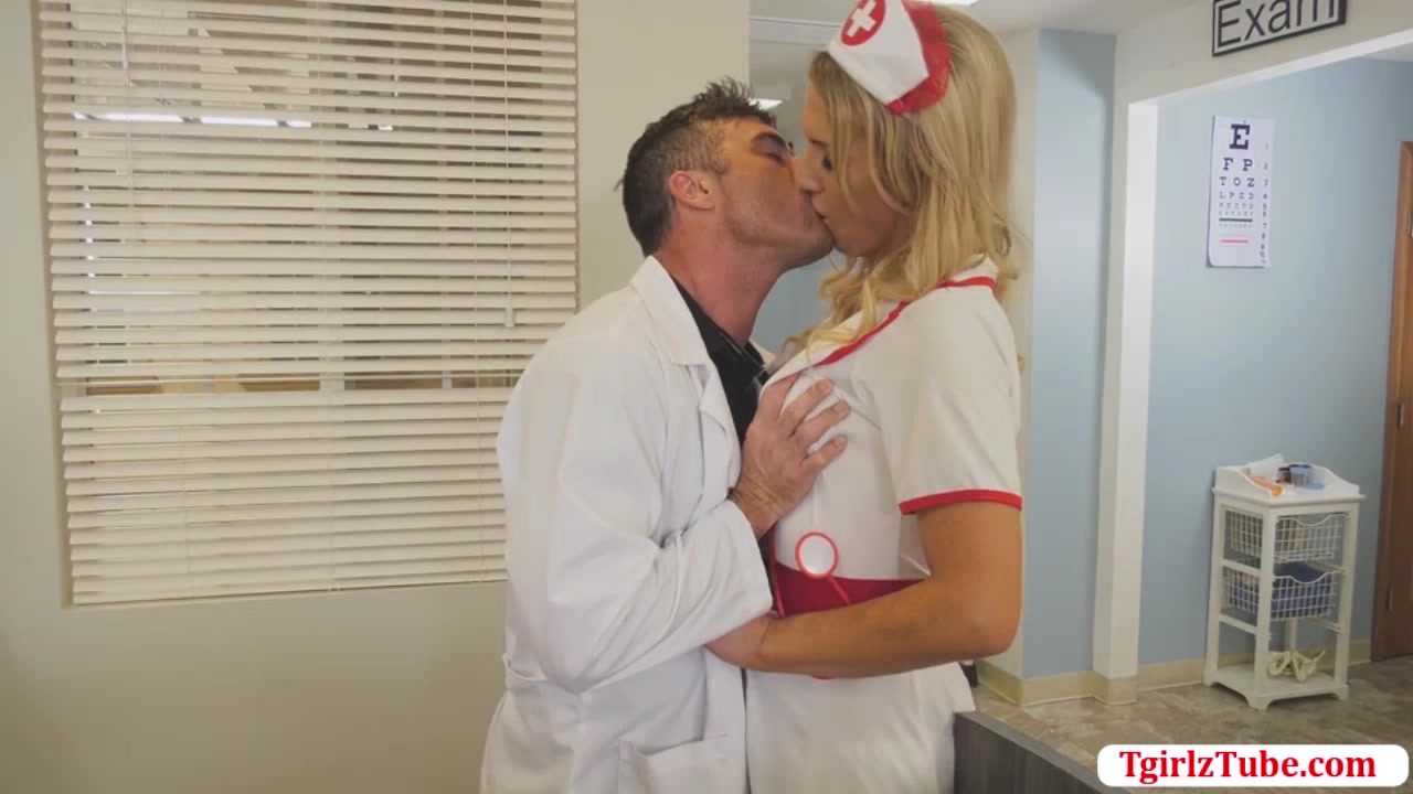 This busty and blonde Tranny Nurse Kayleigh Coxx is off duty, but shes in the hospital. Doctor Lance Hart noticed her and fucks her while no one is around at the nurse station.
