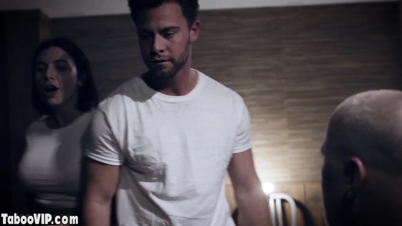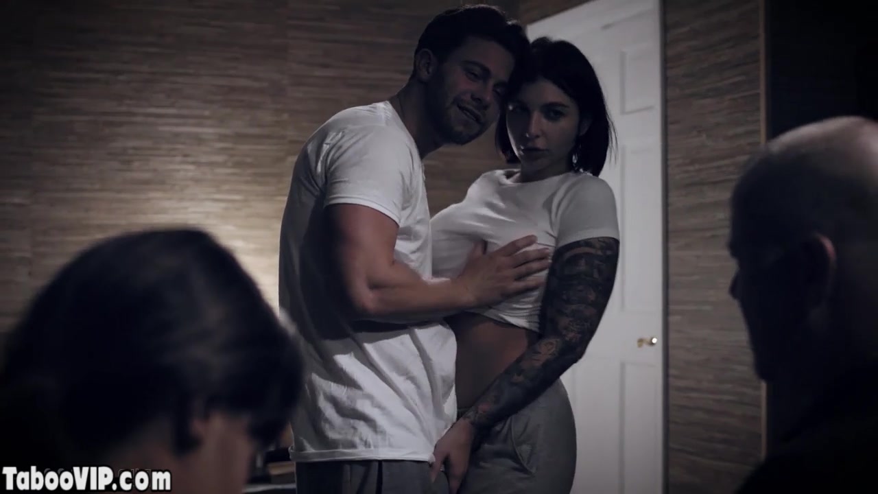 Chubby inked teen stepdaughter with big boobs and big booty and perv BF tied her parents and orders them to watch she sucks his big cock before she analyzed in doggystyle