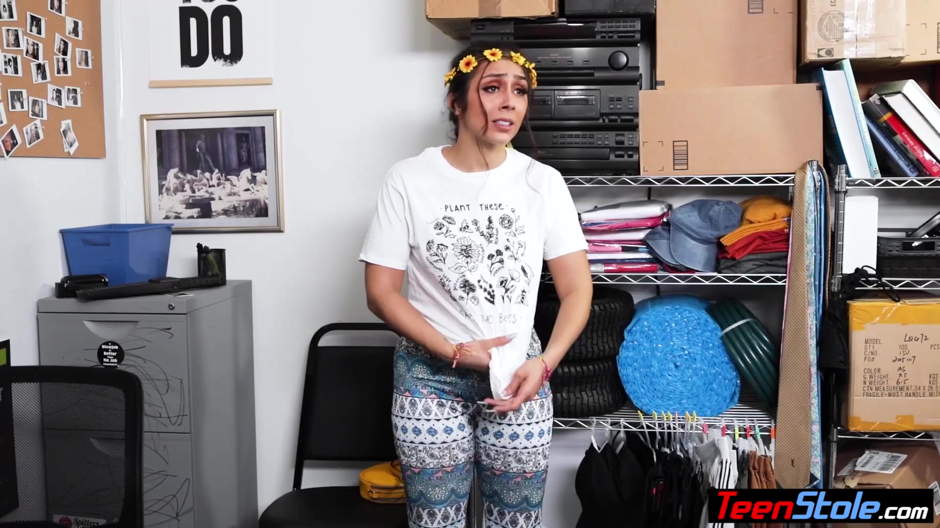 Chubby brunette teen shoplifter Lilly Hall with big natural tits and big booty tried to steal from a mall but got caught by a big cocked security guard who punish fucked her shaved pussy from behind on CCTV