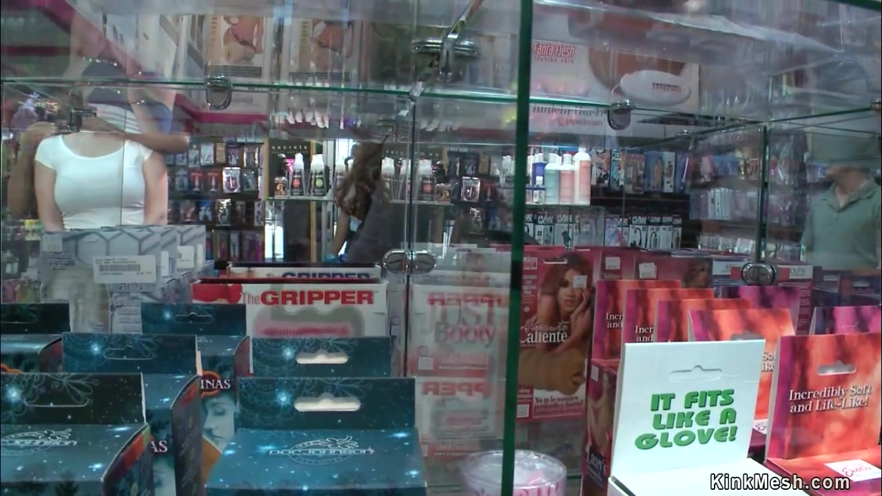 Toni Ribas drags hot busty blonde slave Danielle Delaunay in public sex shop and there makes her suffers pain and rough anal fuck for crowd