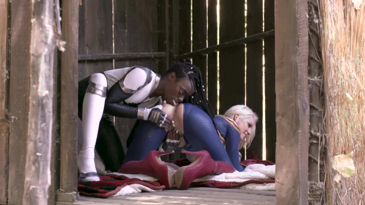 Captain Marvel and two interracial lesbian babes eating cunts with Kenzie Taylor and Ana Foxxx