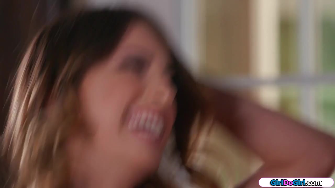 Blonde see her big tits brunette best friend dancing and gets turned on.She joins her and they share a kiss.They suck on each others tits before the blonde licks her besties hairy pussy.She is asslicked and facesits her big tits friend