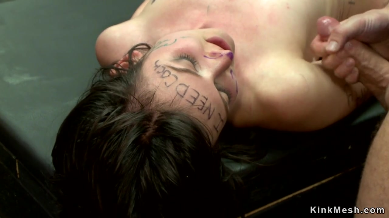 Dom Ariel X makes brunette Euro slut Amy Faye submit in public and get big dick from John Strong in shaved pussy then in tight asshole till gets cumshot in front of crowd