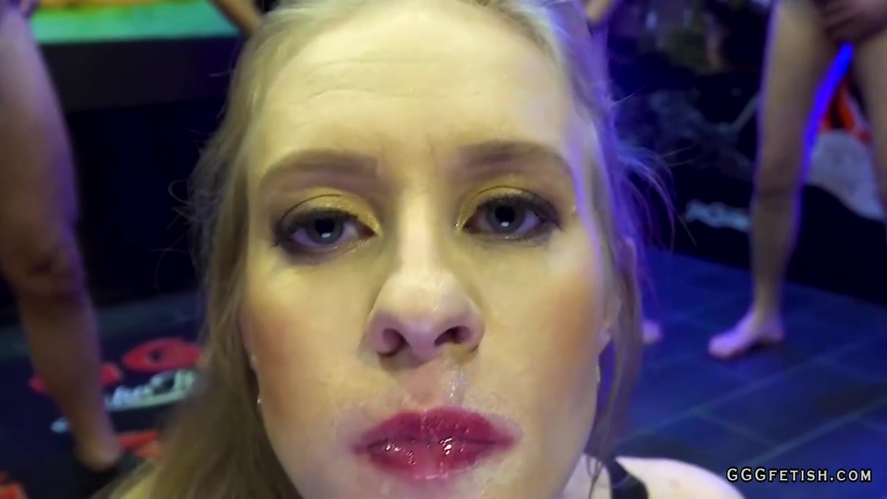 Ukrainian blonde slut in black stocking and lingerie nikki riddle shows cum swallows and blowbang on big dicks with cowgirl ass fucking in from german horny guys
