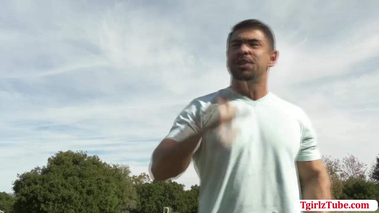 Blonde TS Angelina Please and her fitness instructor are getting ready for the workout.After that, her instructor removes her leggings and he then sucks her shecock.In return she lets her instructor barebacks her tight ass so hard.