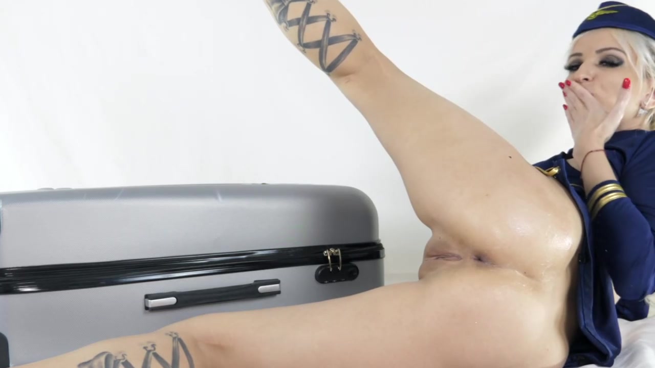 Blonde luxury fly attendant fisting ass