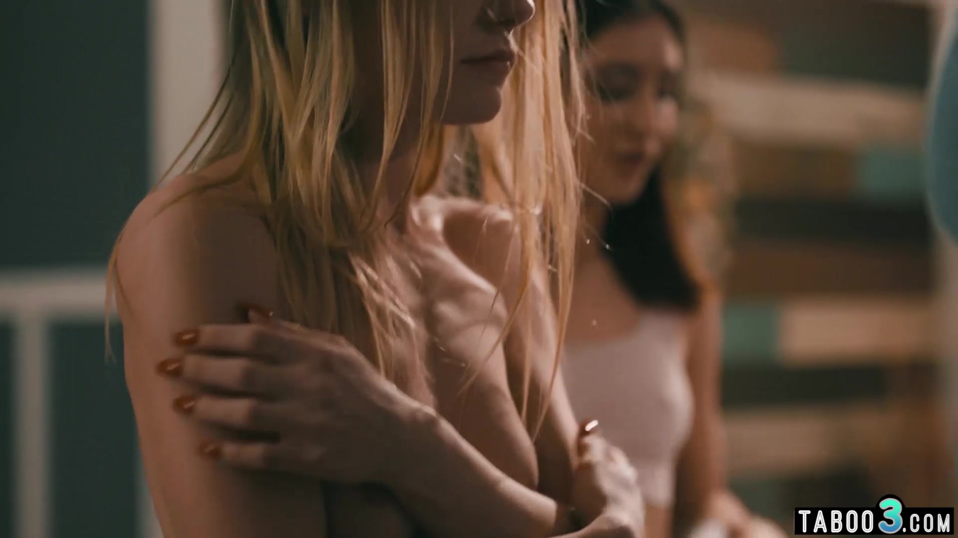 Bisexual brunette stalker Jane Wilde with perfect natural tits makes two scared friends fuck for her twisted enjoyment She orders the petite blondie Natalie Knight to taste the big cock then hops onto it for a ride during she licks his big balls