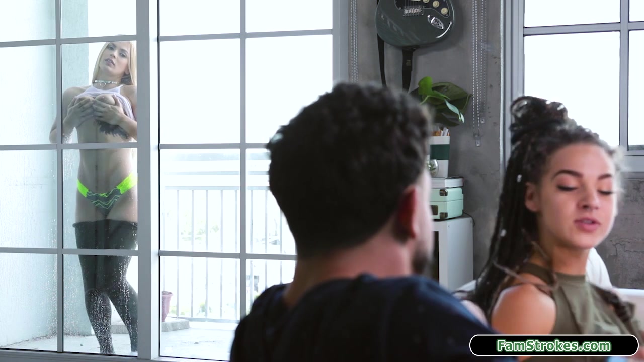 Busty blonde petite tattooed stepsis horny up her stepbro by showing him her boobs.When his gf notices she leaves but his stepsis offers herself to give him some relief.He licks her pussy and she sucks his big cock.On the couch he fucks his stepsis