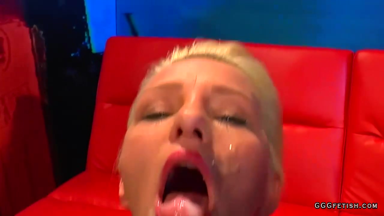 Sexy and dirty blonde slut jessy gets gangbang with cumshots bukkakes and facials from german horny dicks while she collect and swallows sperm