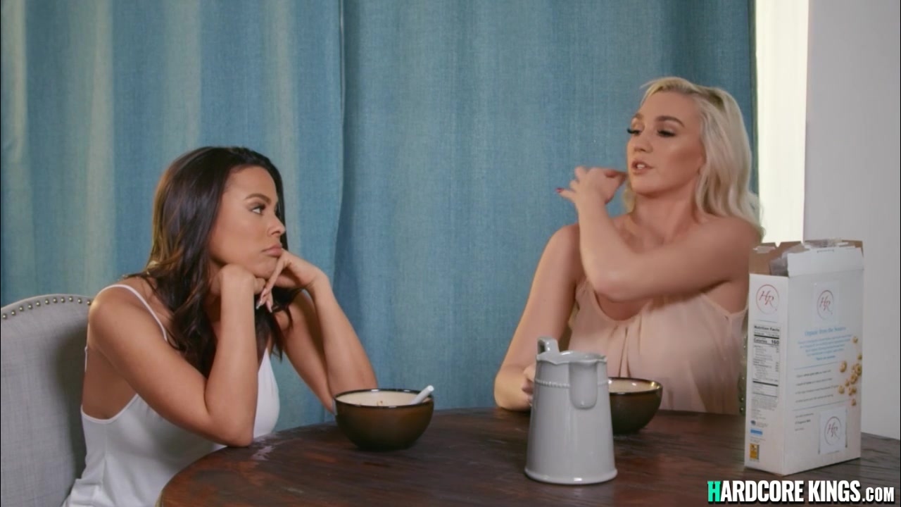 Huge tits blonde lesbian Kendra Sunderland showsher curves on sunlight and then busty brunette Luna Star takes her and they lick each other