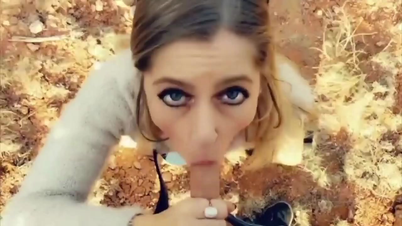 I got a great blowjob in my backyard from my blonde girlfriend in POV