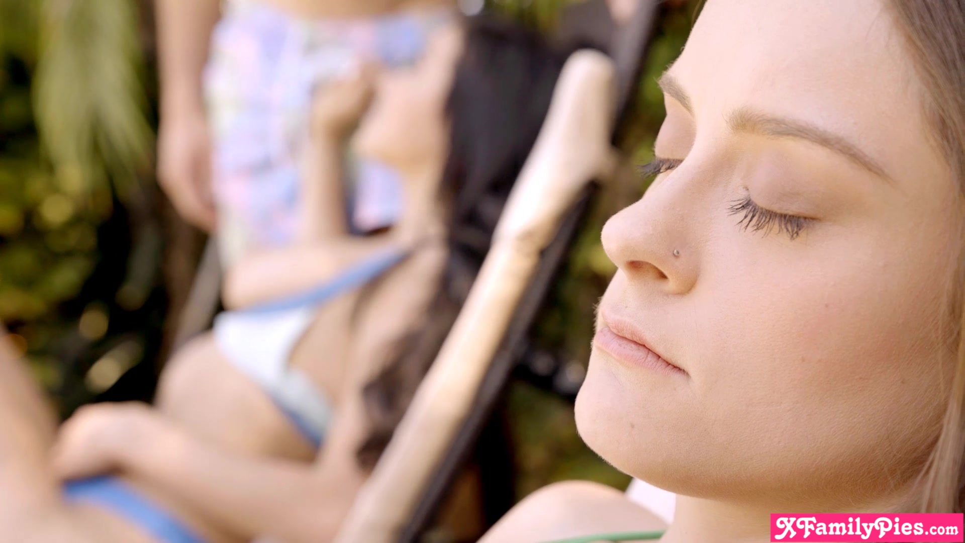 Two college teens Savannah Sixx and Lily Glee like to share stepbros cock in a threesome before school starts again tomorrow First Savannah sucked him off near the pool when Lily dozed off Then they moved it into the bedroom for a dirty threeway fuck!