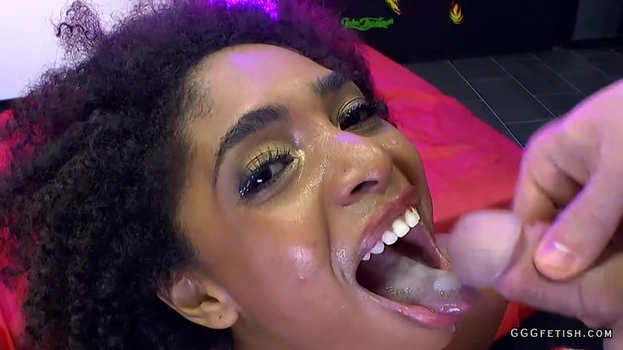Ebony latina babe with perfect tits and body luna corazon gets cumshots and extreme banging with gagging and facials from big horny dicks