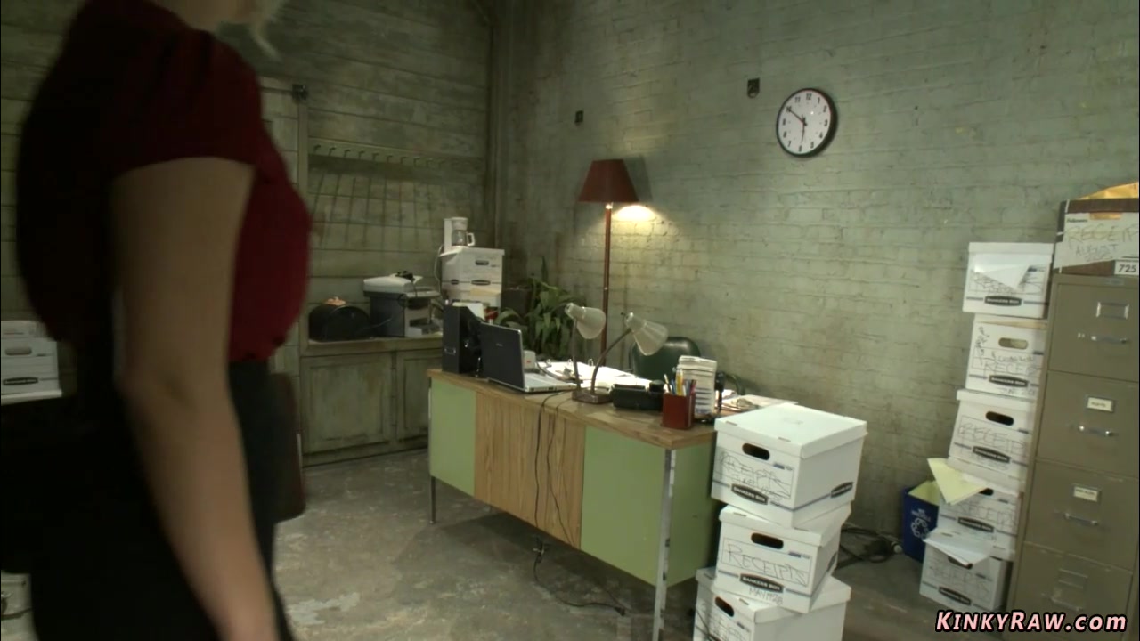 Blonde fucks machines in the office
