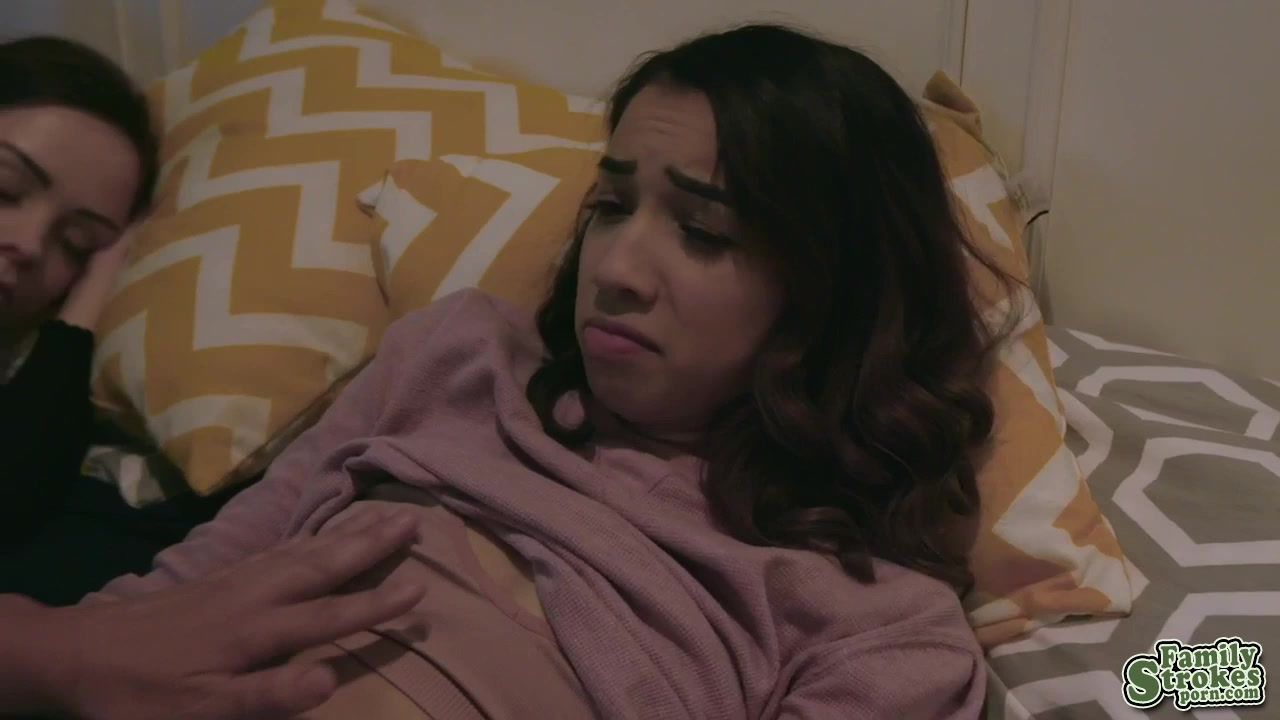 Aliya, wants her bestie, Jackie, to stay over the house this weekend. Her stepdad, Eric will only allow it if Jackie fully understands the house rules. First, she’s going to have to watch while Aliya sucks him off right in the kitchen. Then, Eric will fuck Jackie and Aliya at the same time