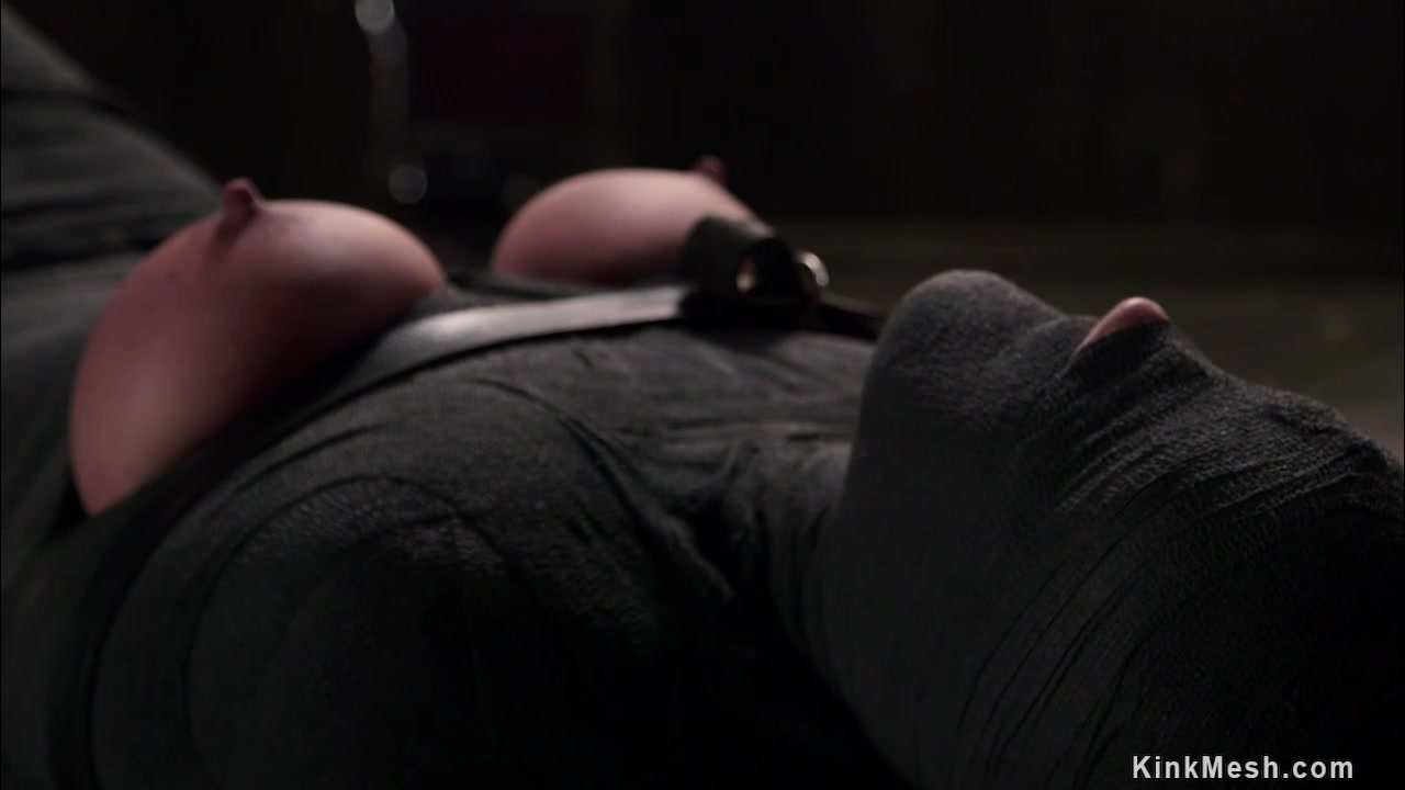Mummified big tits brunette slave Penny Barber gets bare feet whipped then chained in back bent position shaved pussy caned by master The Pope on device bondage