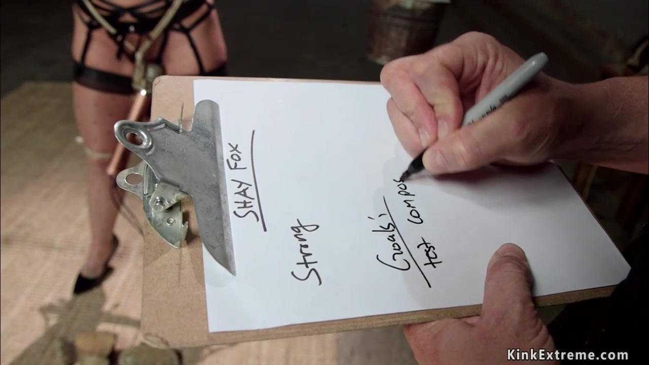 Huge tits brunette Milf slave Shay Fox in stockings holding heavy buckets while she is in rope bondage then getting mouth and pussy banged in threesome slave training
