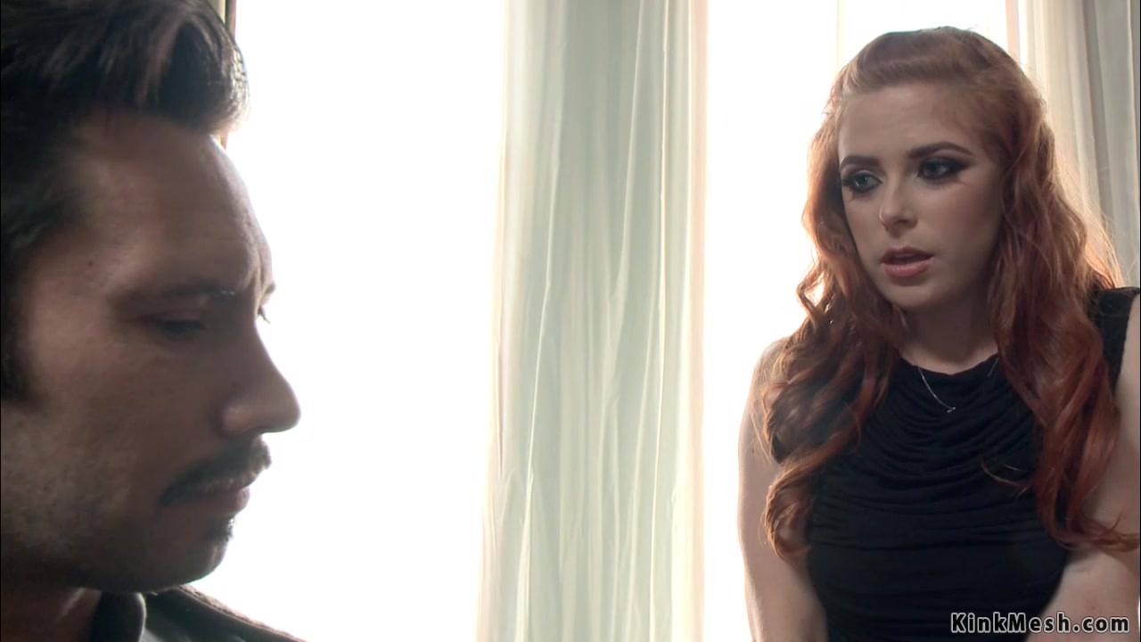 Big tits redhead boss Penny Pax is bound by mad employee Tommy Pistol and with hooked ass in bed gets ass whipped then big boobs clamped