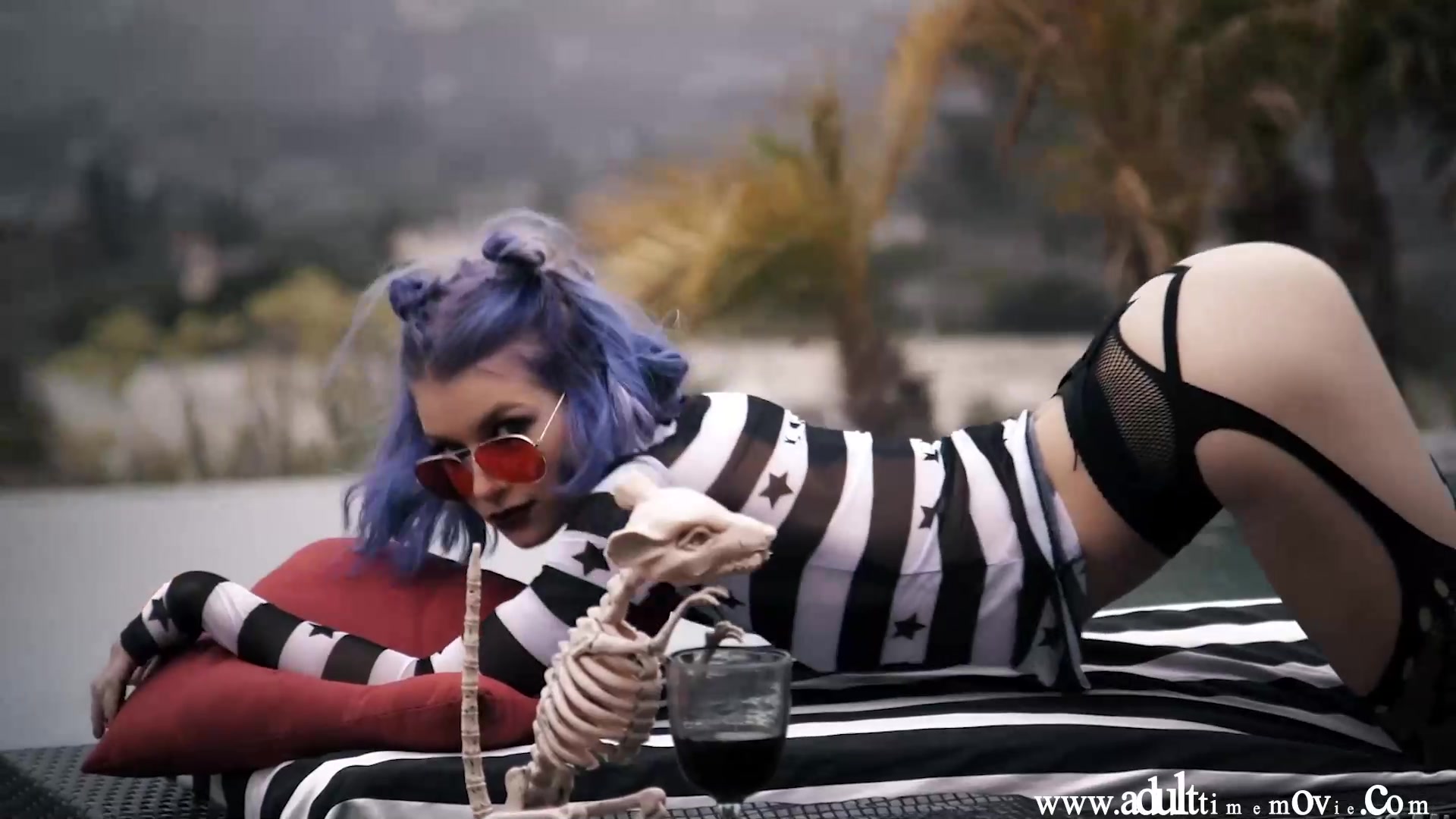 Goth princess Arya Fae was relaxing by the pool - but sherry and cigarettes wasn't doing it for her. Arya needed of anal sex and orgasms!