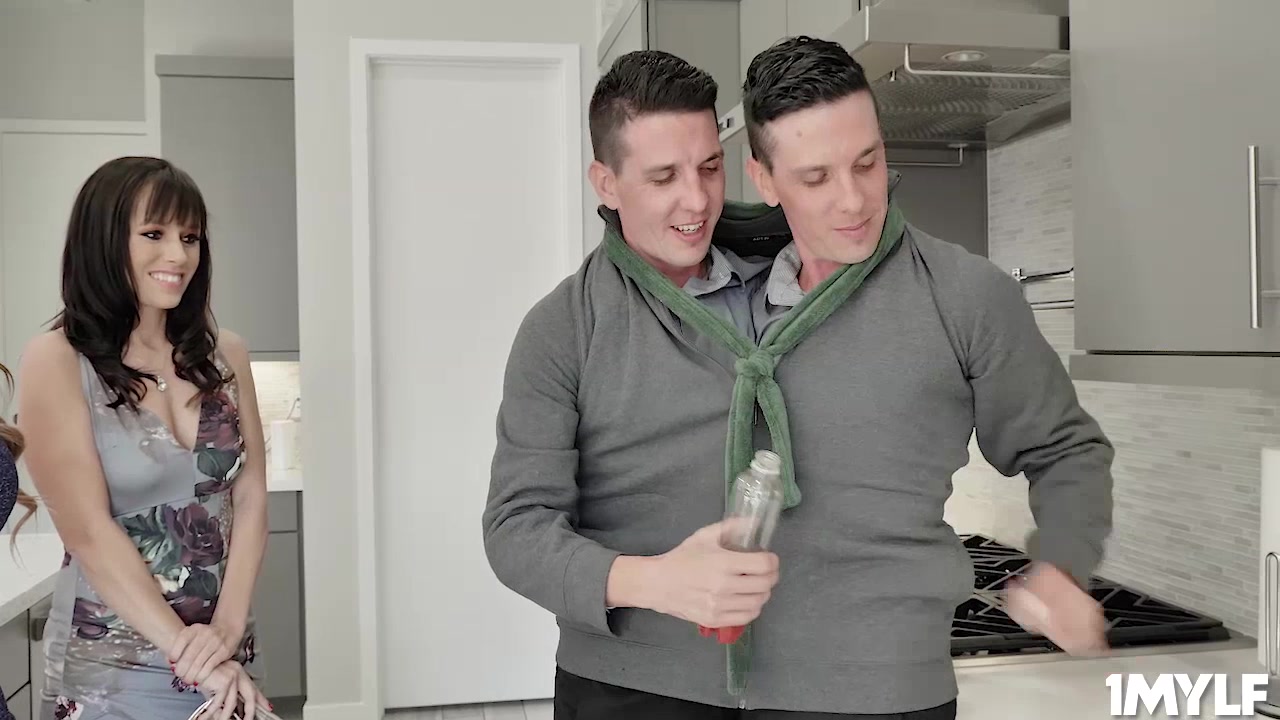 MILFs Alana Cruise and Richelle Ryan think that fucking conjoined studs would be super hot so the guys decide to fake them out They show up at the MILFs house with a single sweater on pretending to be conjoined the guys are revealed as frauds