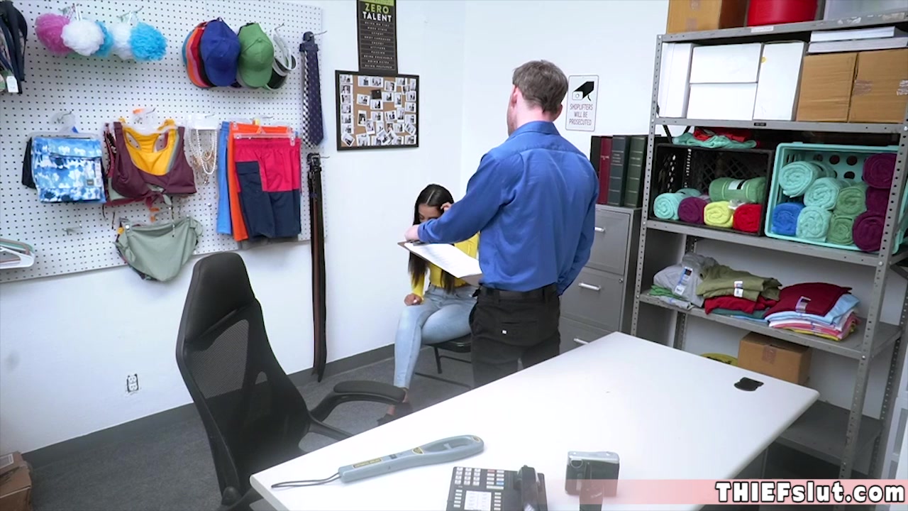Hot latina thief called Kiarra Kai endured a strip search in the shopping mall then agreed for a rough quickie doggystyle session just to drop charges