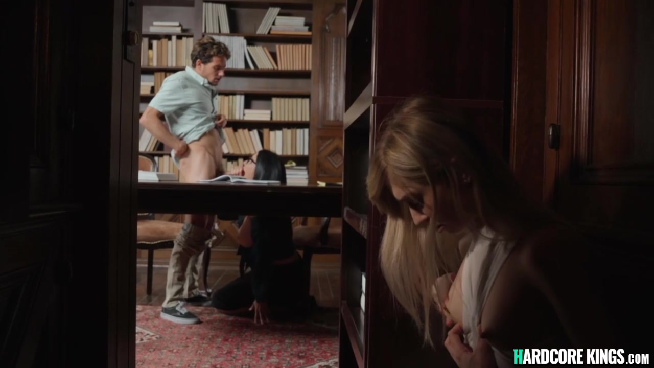Blonde teen Mackenzie Moss caught her big tits stepmom librarian Reagan Foxx while sucking cock to her bf Tyler Nixon and then joined them in threesome