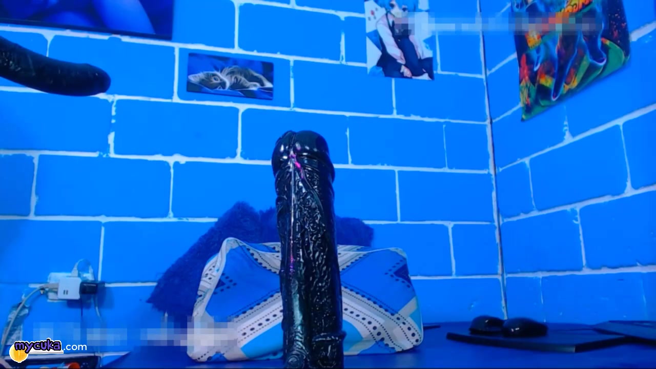 Watch this psycho fucking her asshole and vagina extremely deep with this big