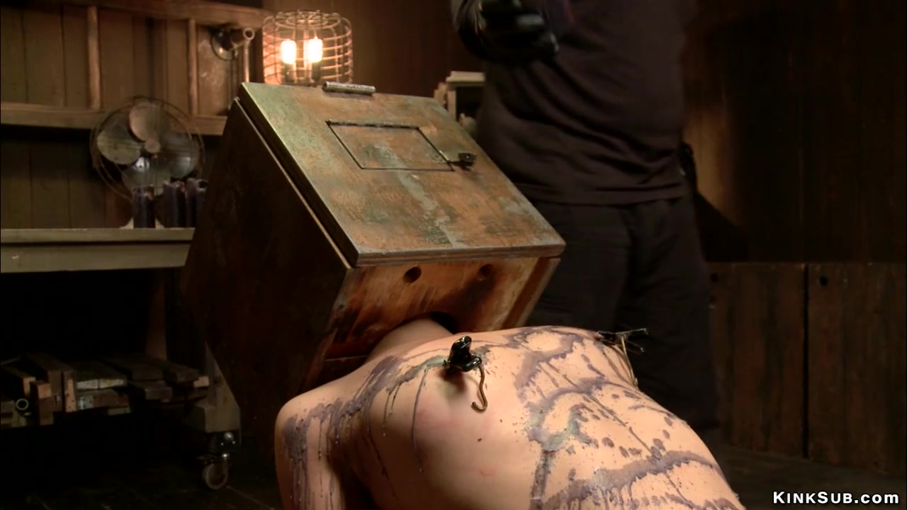 Asian slave on device bondage whipped