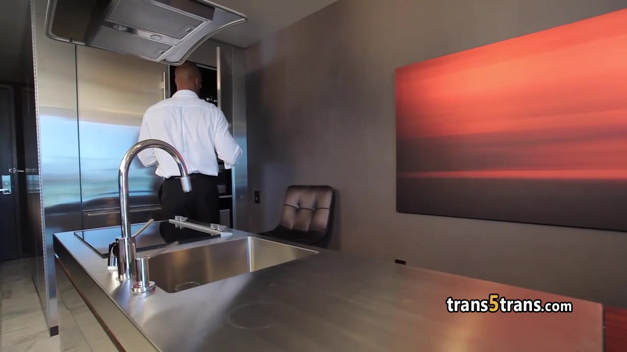 Horny black guy got his hard cock deep sucked by small tits skinny ladyboy then he fucked her tranny hole while she masturbated until facial cumshot