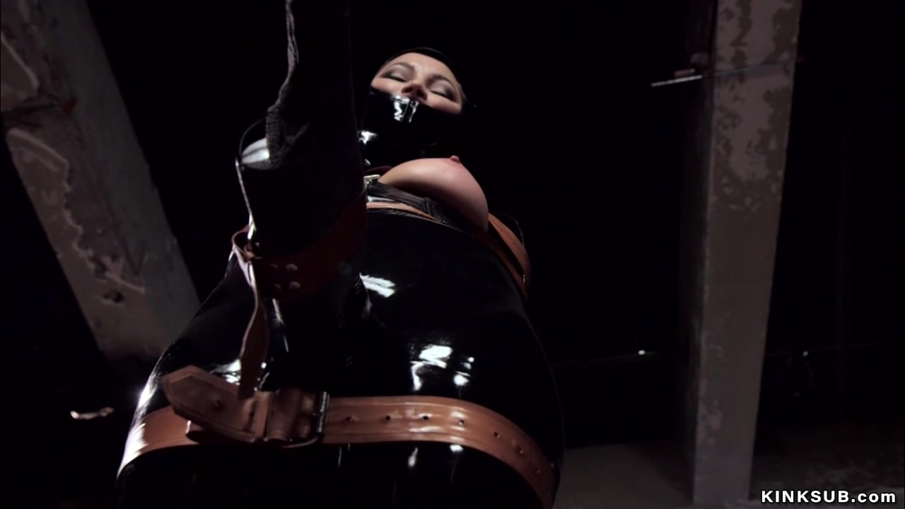 Stunning brunette slave trainee Dani Daniels with big tits and prettyface in black latex is set on Sybian by master James Mogul while Tommy Pistol bangs her mouth then pussy with big cock