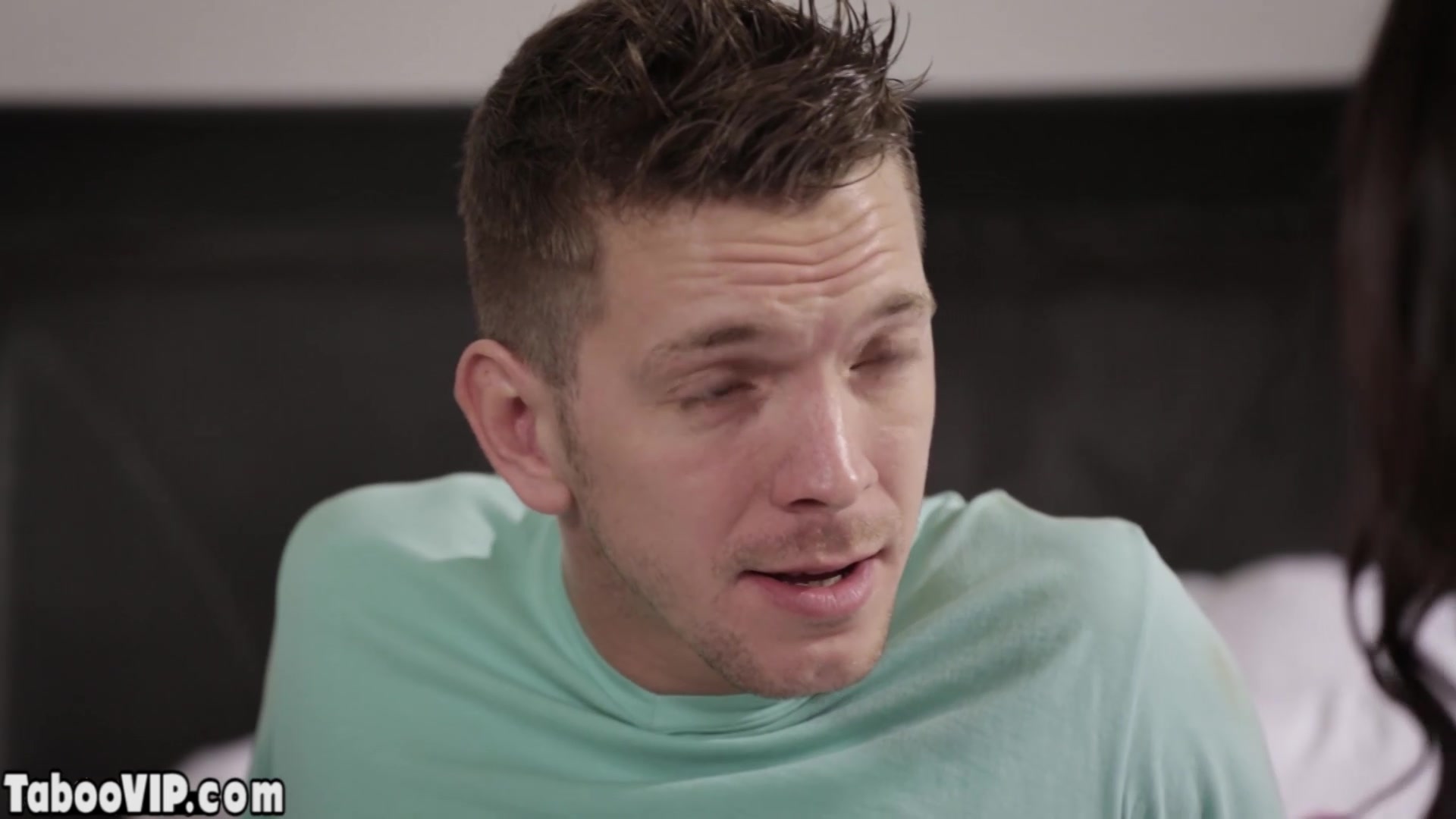 Busty brunette teen stepsister gives a sensual handjob to her big cocked stepbrother then he fucks her face and shaved pussy roughly