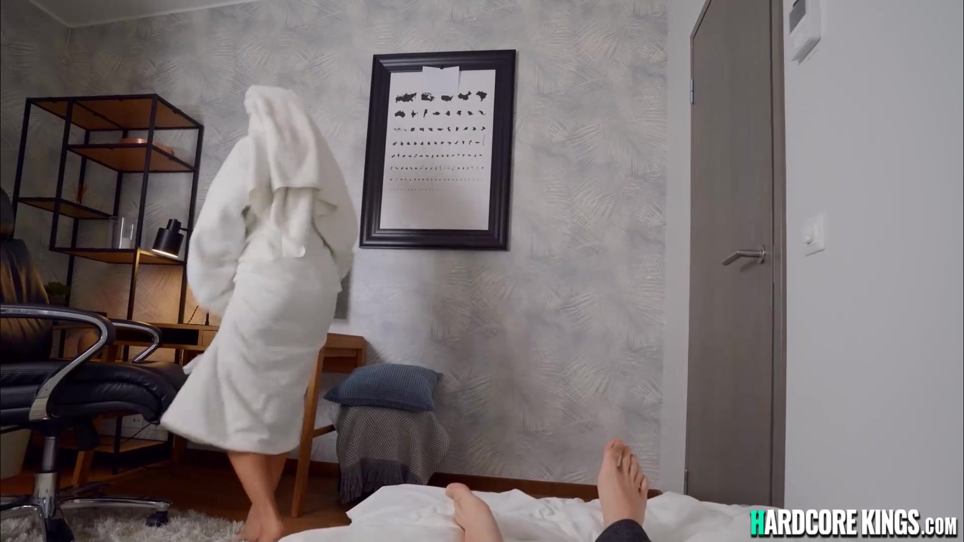 Sexy brunette girlfriend Katrin Tequila is caught masturbating in bathroom by bf then he licks her in armchair and fucks her pussy in bed POV