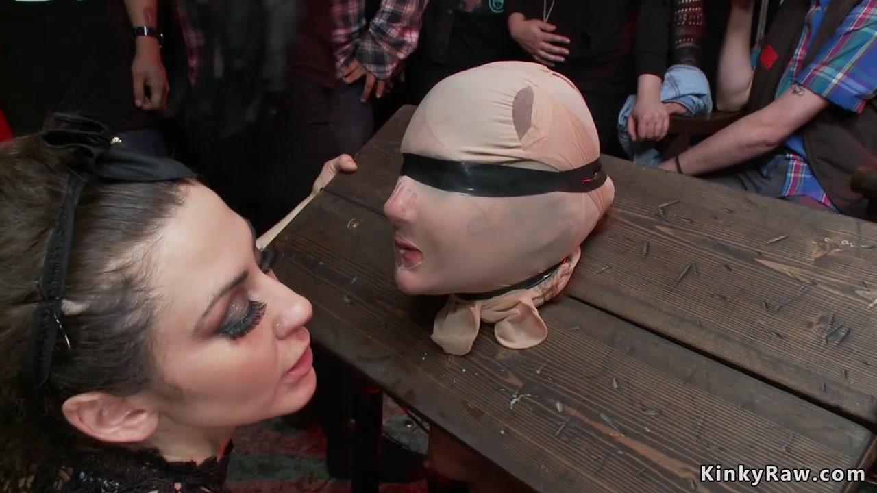 Hot big tits brunette slut Savannah Fox in chair bondage with legs in the air gets anal gangbang then lezdom from Princess Donna Dolore at public concert