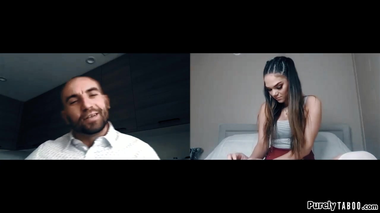 Teen stepdaughter confronted by her stepdad for getting a tattoo during a videocall.He tells her to spank herself as punishment.The small tits brunette has to take off her panties and rub her shaved pussy.All naked she masturbates to an orgasm