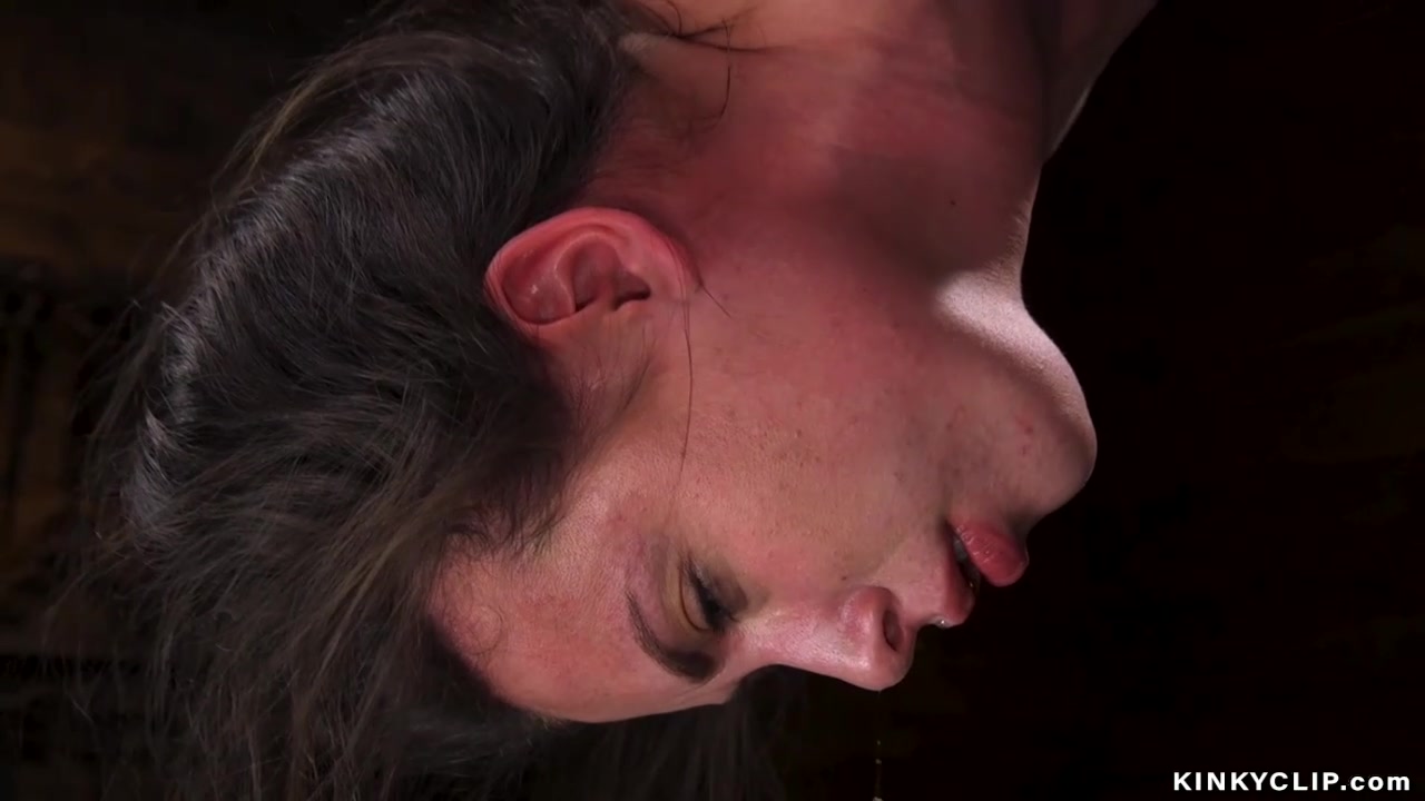 Baldheaded tattooed master Derrick Pierce rubbing pussy to bound brunette slave Casey Calvert while she is squating then whipping and fucking her