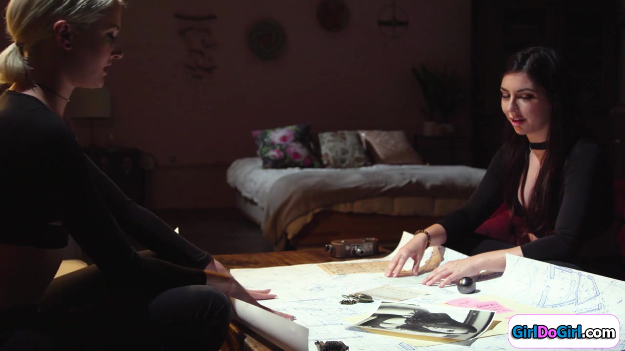 Petite small tits spies have to seduce a woman for their assignment so they practice on each other.The blonde and brunette kiss and suck each others perky boobs.The blonde babe is masturbated and pussy licked before she fingers while facesitted