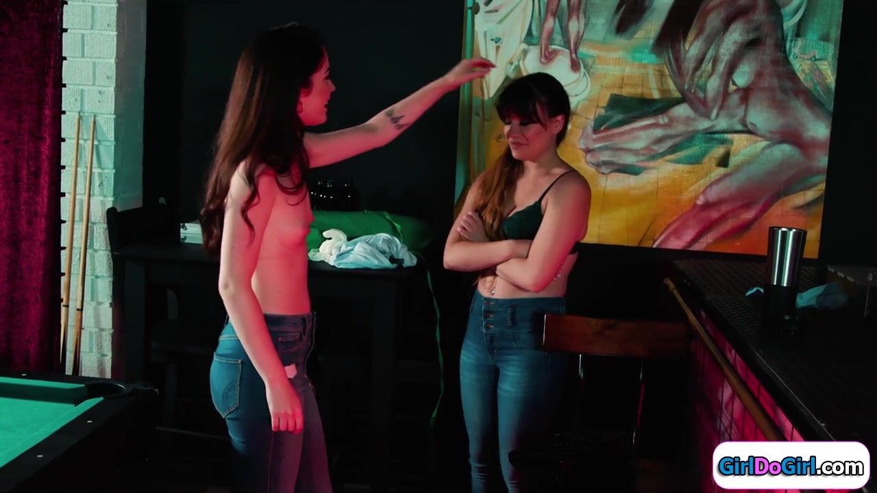 Barista spills coffee on her skinny small tits brunette customer.She takes off her clothes and seduces the barista.They kiss and the brunette licks her pussy.She sets her shaved pussy on the baristas mouth and is oraled and fingered before they 69