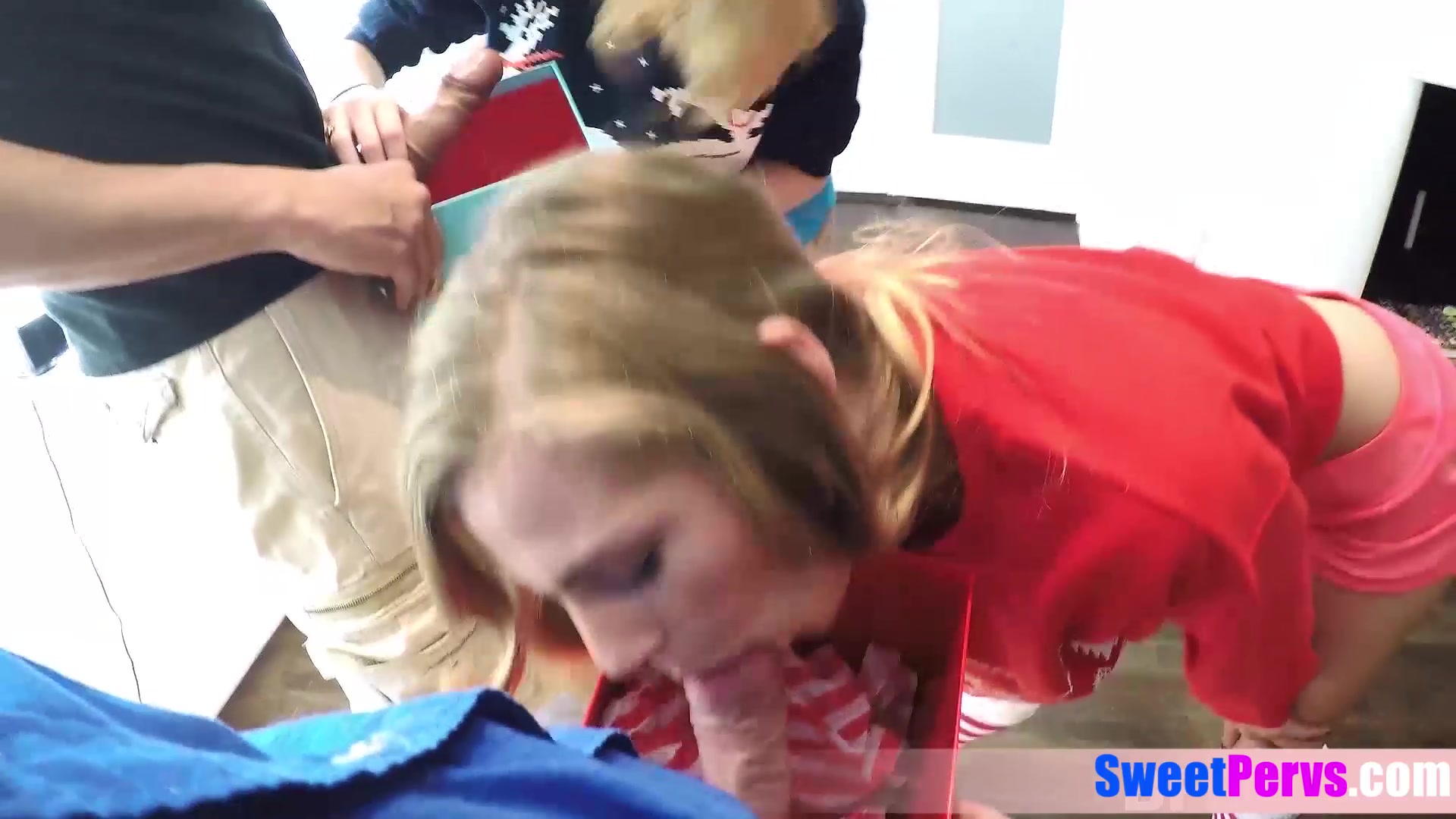 Horny dudes boxing their big cocks and surprising their nasty teen girlfriends Sydney Cole and Moriah Tyler They opening the boxes and start sucking the hard meats without hesitation then they hop onto them for wild ride