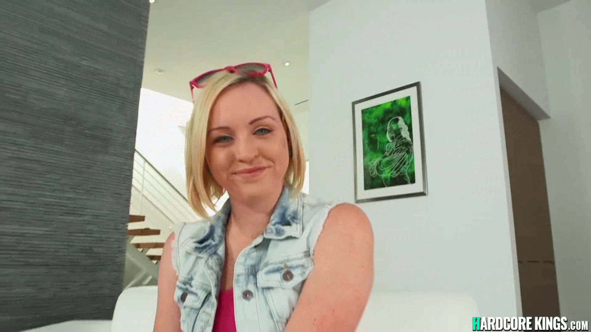 After interview poerky boobs little blonde babe Miley May takes big black cock from Moe Johnson in her pussy and mouth in leather sofa