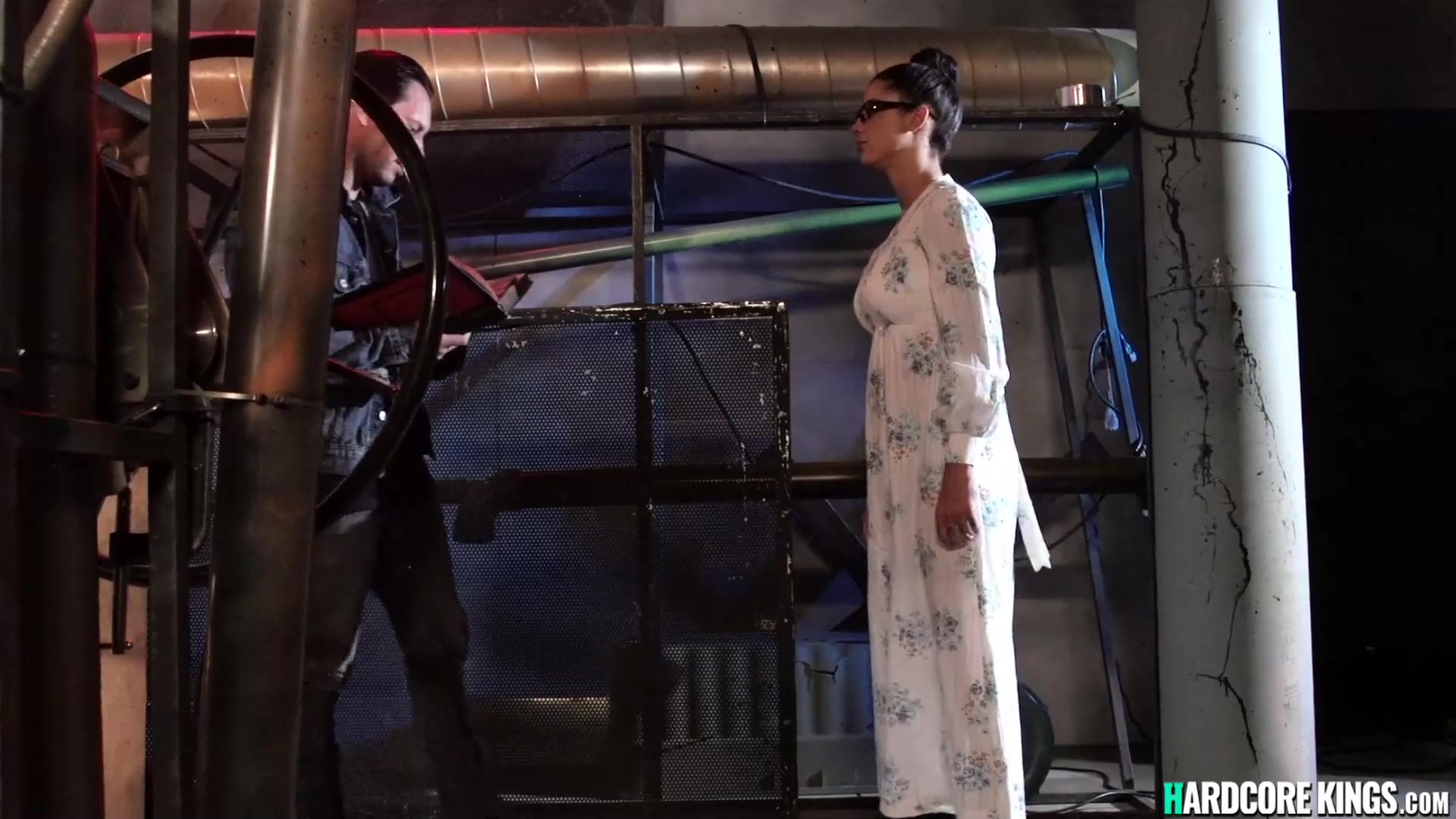 Super hot tattooed brunette babe Bonnie Rotten in long dress on her knees sucks big cock to Tommy Pistol then he fucks her pussy and asshole